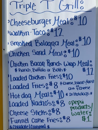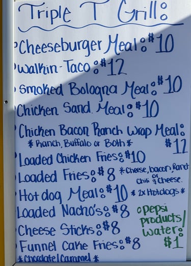 Triple T Food Truck brings the classics — burgers, plates, and trail-day comfort favorites — the kind of meals that hit just right when you’ve been in the dirt since sunrise.